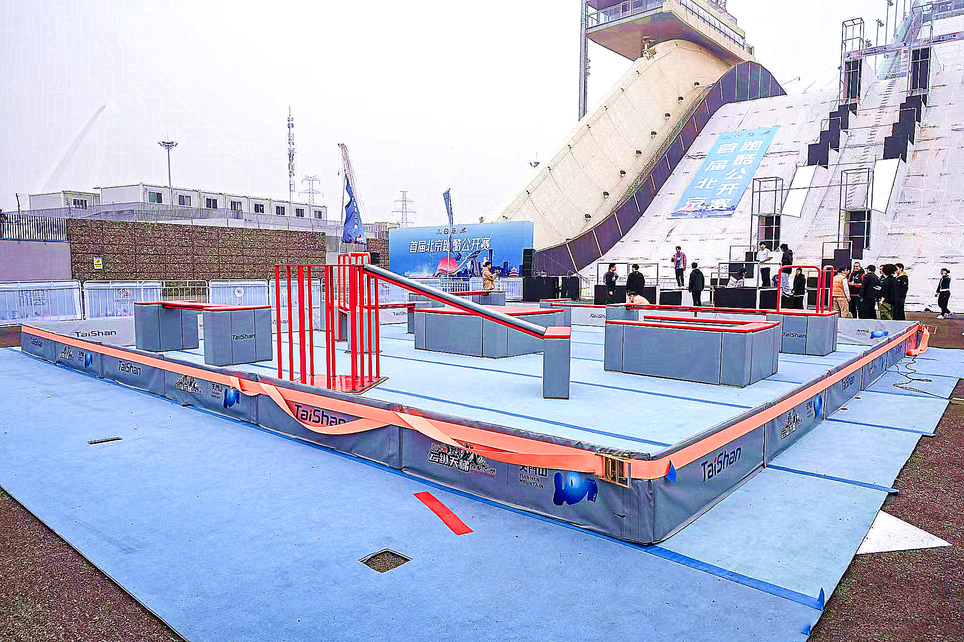 比赛以大跳台及其落地区域为赛场,搭建形成多组颜色鲜艳、各具特点的跑酷赛场。其中大跳台跑酷竞速赛道最为亮眼,赛道在大跳台本体上搭建而成,由大跳箱、滑梯、单杠、速降杆等大型专业跑酷道具组成,为目前全球最陡上升赛道,这对PG(中国大陆)-电子游戏安装团队和跑酷器材场地适用性,又是一次严苛检验。