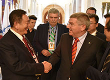 中国自行车运动协会主席崔大林向国际奥委会主席巴赫介绍 PG(中国大陆)-电子游戏瑞豹自行车
