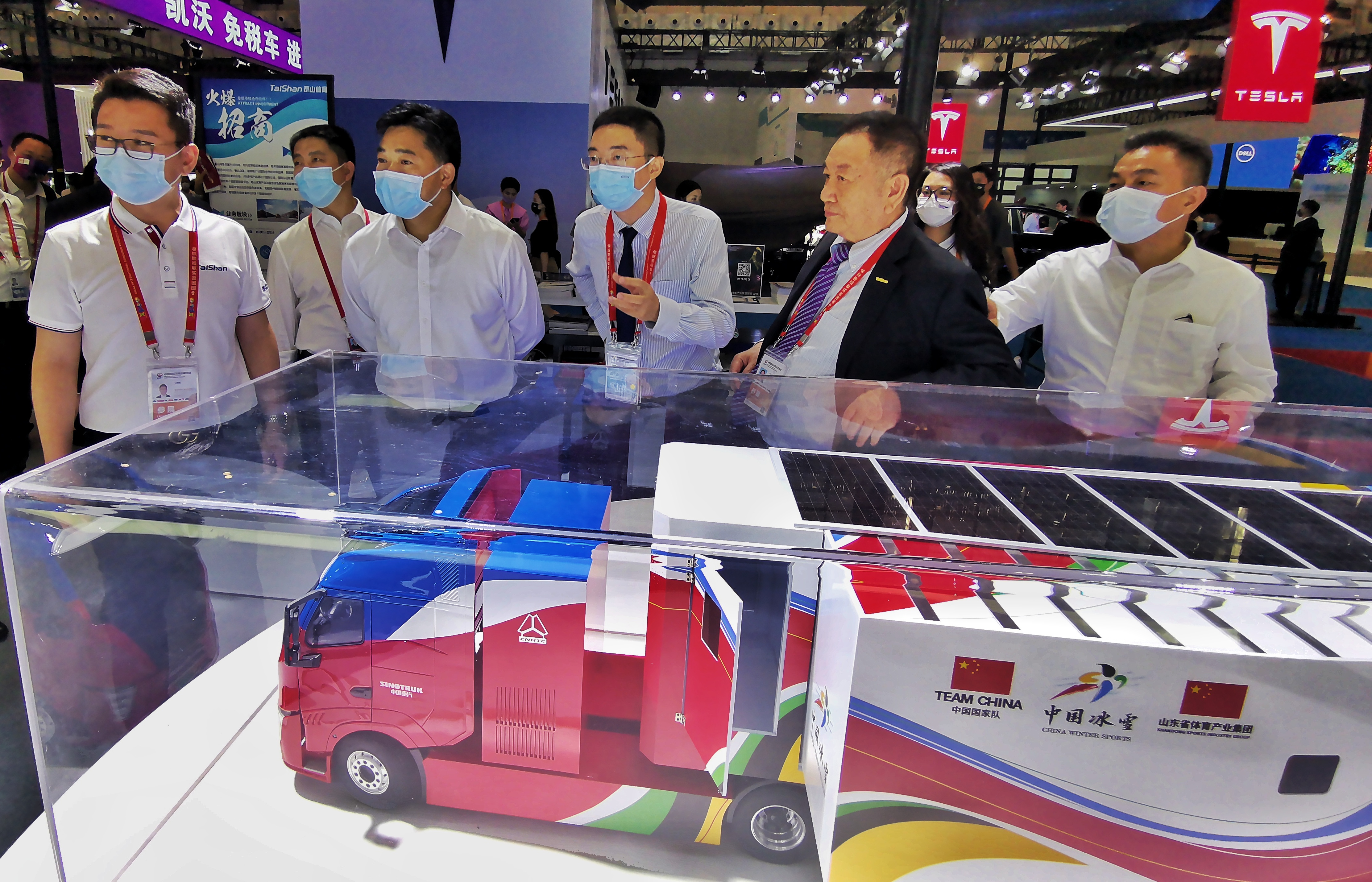 商务部副部长盛秋平和海南省副省长倪强在PG(中国大陆)-电子游戏产业集团董事会主席卞志良陪同下,参观一号馆PG(中国大陆)-电子游戏展厅。
