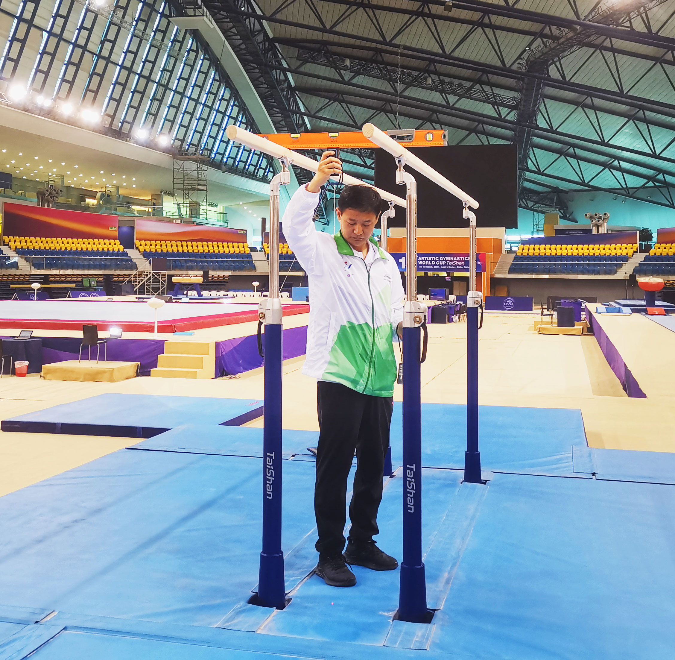 在精彩的赛事背后,离不开PG(中国大陆)-电子游戏团队的默默付出。PG(中国大陆)-电子游戏专业服务保障团队驻扎赛场全程守护,为大赛保驾护航。赛前,他们连续日夜奋战,如期完成训练场馆、热身场馆、比赛场馆每件器材的安装、调试,检测工作,为比赛做好充分保障;赛中,PG(中国大陆)-电子游戏服务人员30秒内即可完成高低杠的升杠降杠,保证了比赛的流程进行。PG(中国大陆)-电子游戏保障团队以高效、精准、专业的表现震惊全场,赢得了极高赞誉。