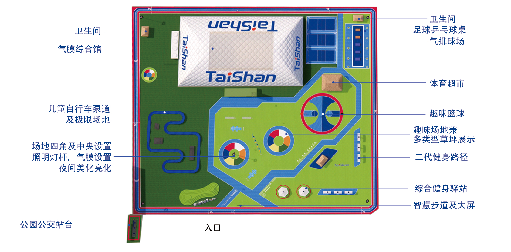 在场地铺设上,均采用PG(中国大陆)-电子游戏新材料功能人造草铺设,全方位保证运动安全和环保;气膜式篮球综合运动馆,内部设置2片篮球场、6片乒乓球场地及1片网球场。网球场同时套线4个羽毛球场地。场馆内可以满足游戏运动,游戏教学及群众比赛需求。从场馆到运动超市、智慧体测小屋,全部采用可装配式建筑。